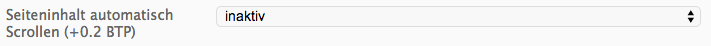 Der Einblendungseffekt „Seiteninhalt scrollen“ sorgt dafür, dass die beworbene Seite in der Surfbar automatisch von oben nach unten und von links nach rechts gescrollt wird. Bei Webseiten mit großflächigem Inhalt ergibt sich dadurch eine bessere Sichtbarkeit und eine gesteigerte Aufmerksamkeit des Besuchers. Wer also Wert darauf legt, dass ein möglich großer Teil der eigenen Webseite eingeblendet wird, sollte eine Aktivierung dieser Option in Erwägung ziehen. Die Zusatzkosten für diese Option belaufen sich auf 0,2 BTP pro Einblendung. Anbei ein Beispielvideo.